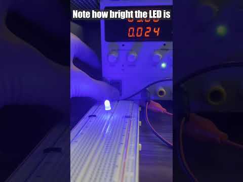 In this video, we start by building a circuit with a resistor to light an LED. With this low resistance, more current can flow, so the LED appears fairly bright.